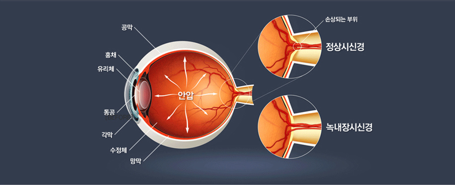 안압을 떨어뜨려 손상된 시신경을 보전하는 것이 목적입니다. 이미 손상된 시신경을 복구하는 것은 불가능합니다.